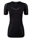 Seamless sports top. Contrast detailing. Short sleeve. Ribbed cuffs and hem. Breathable eyelet detailing that contours to body for a hourglass silhouette. Crew neck. SEDEX certified. WRAP certified. We recommend using block out vinyl and inks.Product contains no branded neck or waist label.* Removable Kimble or looped garment tags. Inner seam label holds important product information on one label with a second label containing brand information which can be cut-away.